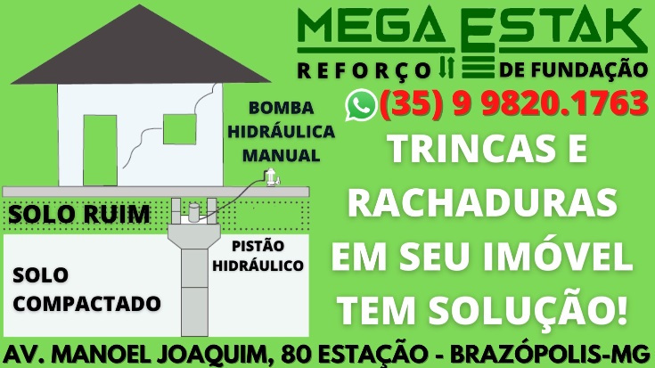 A Mega Estak é uma micro empresa com mais de 20 anos no mercado que presta serviços recuperando estrutura de imóveis com rachaduras, fissuras, afundamento, recalque diferencial entre outros.